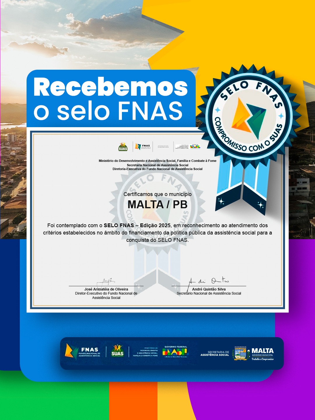 Com o Selo FNAS 2025, Malta se consolida como referência na gestão da assistência social, reafirmando seu compromisso com a inclusão, a cidadania e a melhoria da qualidade de vida da população.